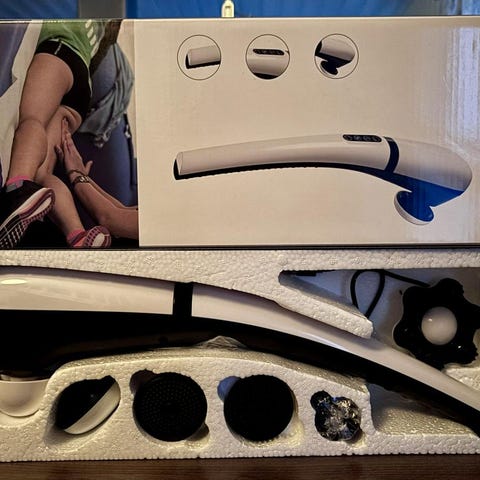 Triggerpunkt rygg. Man håller i handtaget och kan därmed använda kroken på ryggen och köra triggermassage själv.