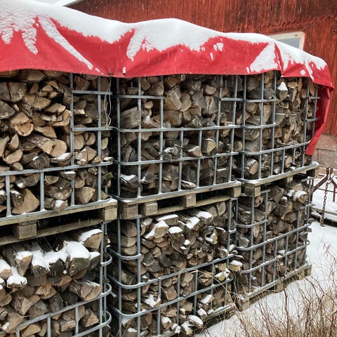 Blandved. Kapat i 30-35cm längd. 575:- för 1 kubik tippat på släp.