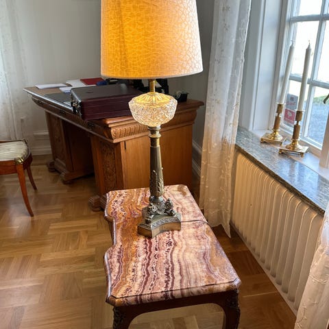 Äskula-lampan är en gammal patenterad värmelampa från Malmö som man använde mot t.ex reumatism, därav handtaget.