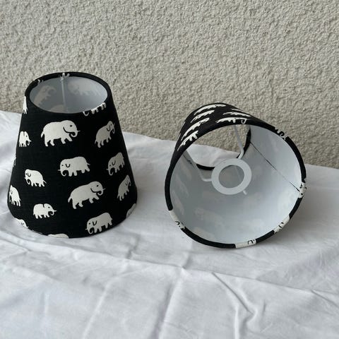 5 Lampskärmar med motiv Elefant Estrid Ericson Svenskt Tenn. Skärmen är klädd med papper från Svenskt Tenn I mönstret Grön elefant. Se bilder. Klofäste.
