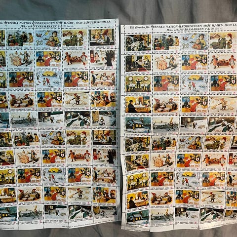 Säljer iväg olika knippen julkort och frimärken. Skriv meddelande för antal julkort och antal frimärken så kommer vi överens om pris.