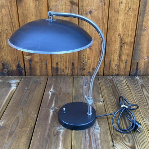 Skrivbordlampa i krom/ljusgrön lack 1940/50-tal