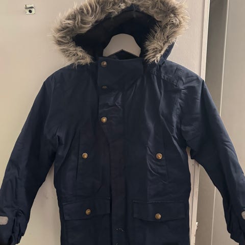 Polarn o Pyrets klassiska vinterjacka, vadderad, vattentät med ”snökjol” o justerbar nedtill, och muddar vid armar. Fint skicka, sparsamt använd, ej hela säsonger. Funkar som skidjacka. Enda brist är att reflexen längst ner bak är borta.