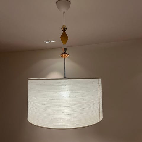 Taklampa vit med guld på insidan diameter 32 centimeter
