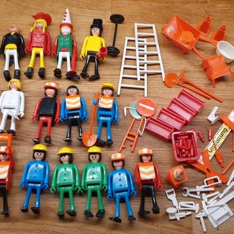 Samling leksaker från 70 och 80-talet. Playmobil,Marvel etc
