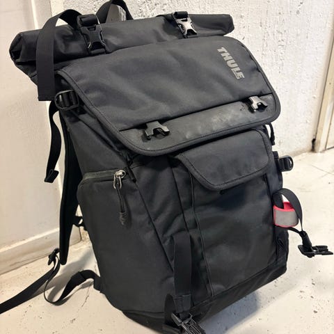 Den är använd, men fortfarande i bra skick. Dragkedjor och remmar fungerar fint.