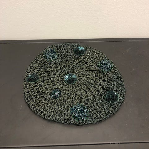 En äkta fransk basker i finaste kvalitet. Ull samt angora vid kanterna. Färgen är mjukt orange- ochra.