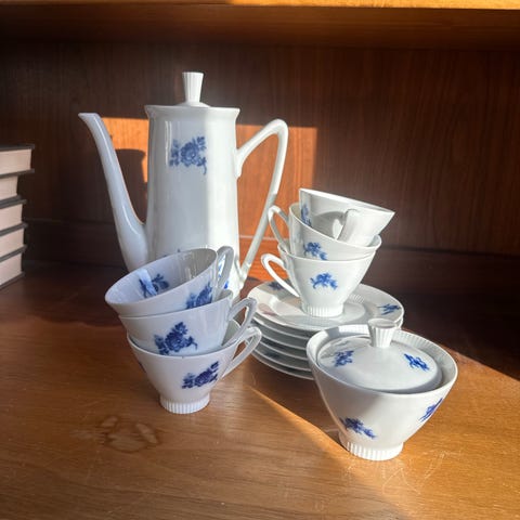 Kopparna och faten är i nyskick.