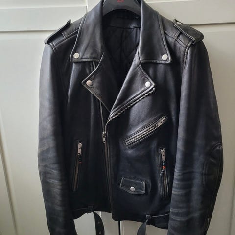 Jackan är aldrig använd den är 2XL men väldigt liten i storleken passar mig som bär L i storlek