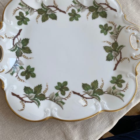 Ett fantastiskt vackert och eftertraktat porslinsfat med guldkant!