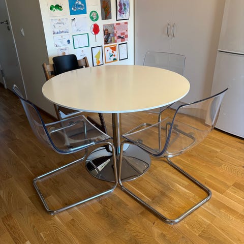 Att ha i det lilla köket som köksbord eller att ha reklam/information på i entrén/väntrum på företaget stabilt och tungt med säkerhetsglas i skivan