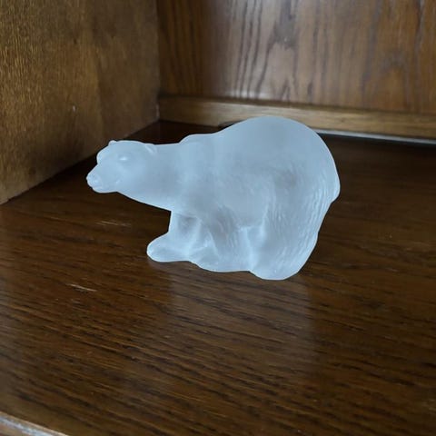 Prydnad som föreställer en isbjörn i kristallglas från Nybro glasbruk.