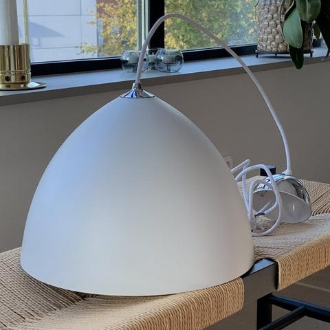 Säljer vår fina pendellampa av märket Belid modell T1023 Covetto. Lampan är 39 cm i diameter och i bra skick.