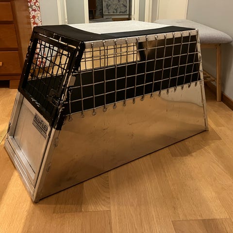 Ihopfällbar hundbur i nylon, ny och helt oanvänd.