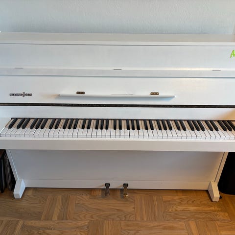Vitt piano Futura Nordiska piano skänkes mot avhämtning den 6/1.