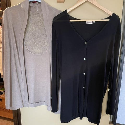 Fin långärmad tröja i ribbat mönster. Något missfärgad efter flertalet tvättar. Men fortfarande väldigt fin.