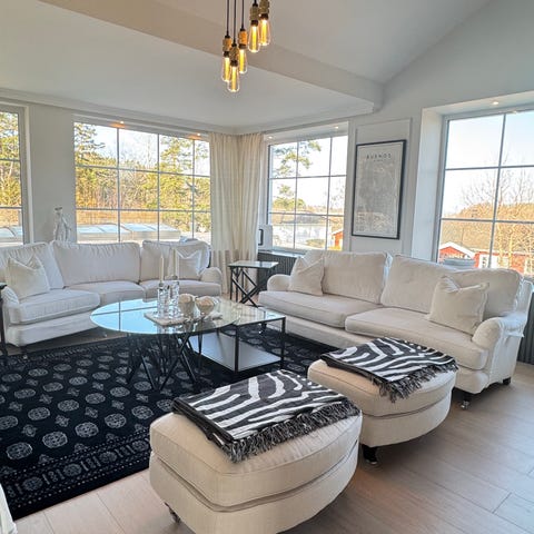 Ena loungegruppen - soffa, fåtölj & två bord.