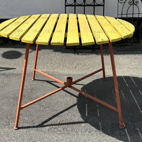 Mycket fint begagnat skick med patina i form av naturliga sprickor (ej genomgående) på skivan. Mindre märken finns, se bilder och förstora gärna.