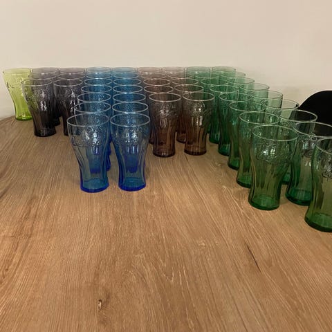 12 tumblerglas i olika färger. Höjd 7 cm. Ekenäs Glasbruk
