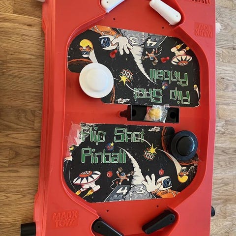 Jag säljer ett coolt Flipperspel, röd racingbil, fungerar felfritt! 48 cm lång. Drivs med vanliga batterier (ingår ej).