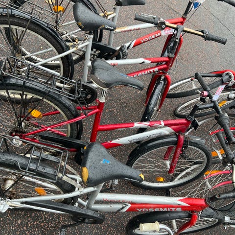 24" cykel. Som syns har den punka fram, bakhjul köpte vi ny slang och nytt däck innan den ställdes ner för ett år sen eller så, men även det behöver luft. Tyvärr förvarad ute senaste året så den behöver kanske lite omtanke innan man trampar iväg, sen blir det en bra cykel. Finns i långserud.