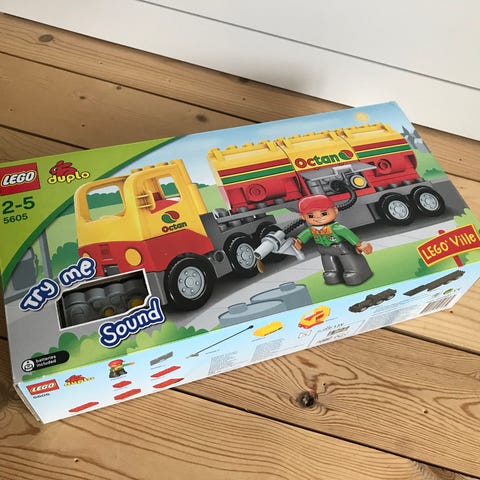 Innehåller även klossar formade som väggtegel, specialklossar med matlådemotiv samt lastbilskontroller för att få igång fantasin.
