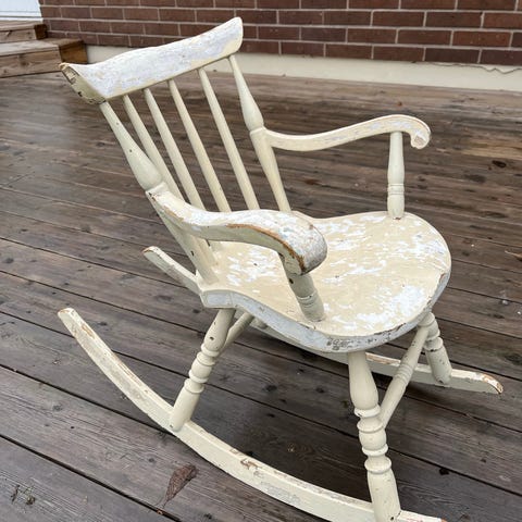 Selling this vintage barn gungstol for free:) It works perfectly fine and is cozy to sit on for kids in around 4-8 year, but as you can see -this is an old chair with marks and cracks.