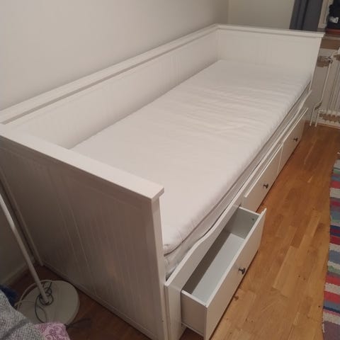 Bäddsoffa/dagbädd Flottebo från Ikea. Mörkgrått tyg.