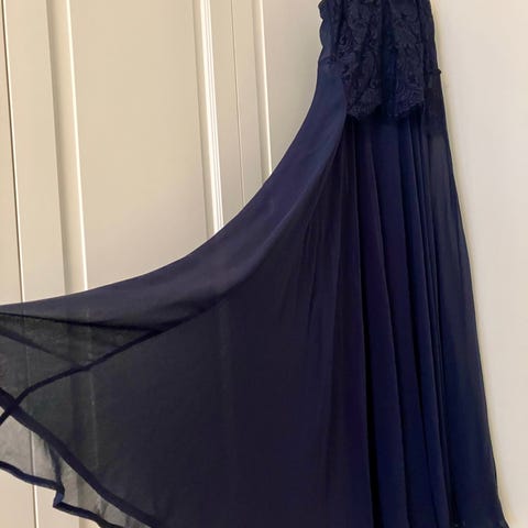 Vacker midnattsblå balklänning som skiftar i en petrolfärgad nyans. Passar perfekt till bal och andra speciella tillfällen.