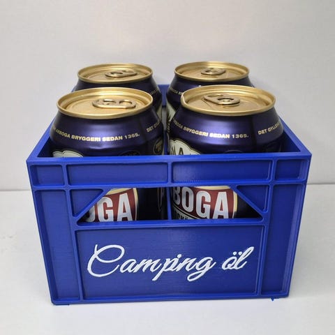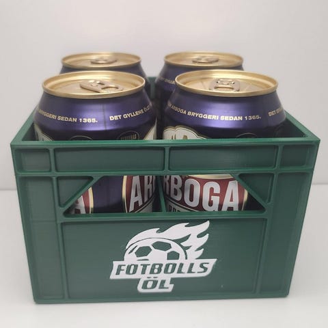 Med inbyggda fack. Så öl/drickan inte halkar runt när du bär runt på den.