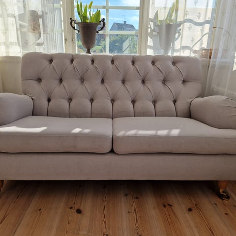 Howard sväng soffa ljus rosa/gammal rosa. 240 cm och sittdjup 60cm. Finns i Södertälje.