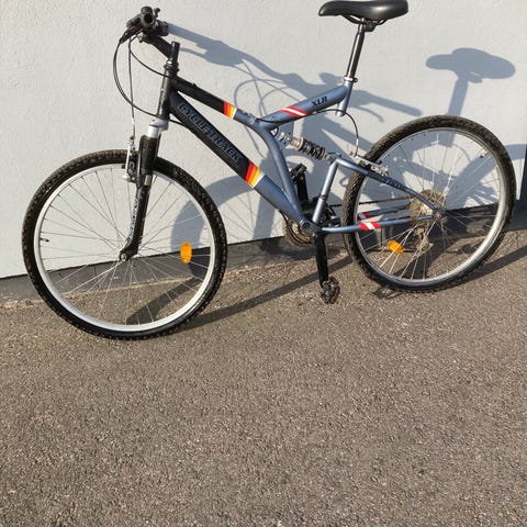 Cykeln fungerar som den ska, växlar och bromsar fint. Inga skador på ramen eller hjulen. Använd sparsamt och alltid förvarad inomhus.
