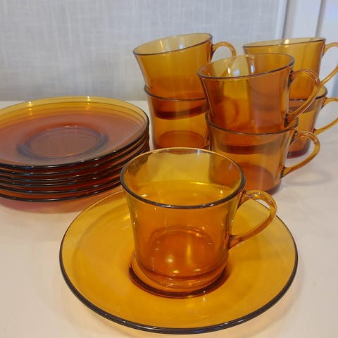 Kopp- och fatset Cinnamon Brown från 70-talet – 8 kompletta set i toppskick som ny.