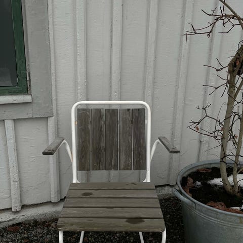 4 st stapelbara trädgårdsstolar av stolrörsmodell liknande grythyttan. Ej hittat märkning.