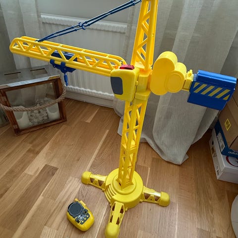 Radiostyrd kran och maskiner. En byggarbetsplats.