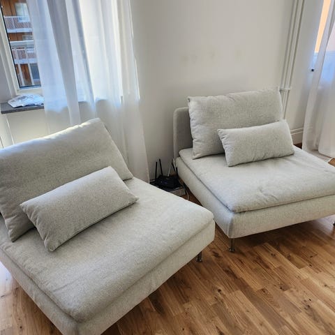 Söderhamn fåtölj hörndel plus pall. Galet skön, perfekt för två.
