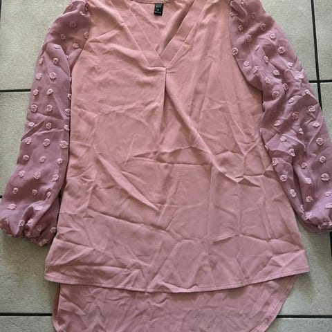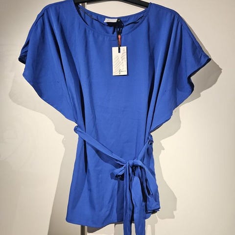 Ny snygg blå blus stl L.Blusen har ett fint snitt,kort lös ärm,