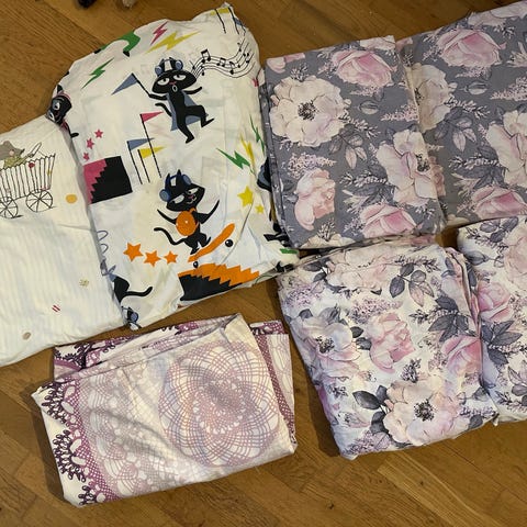 Påslakan 240 x 220 cm. 2 örngott. Tvättat, oanvänt.