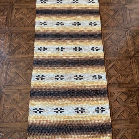Hemvävt lakan. Storlek ca 195 cm långt bredd ca 134 cm. Lakan vävt i 2 delar hopsatt på mitten finns ett monogram