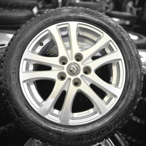 Till salu: Komplett uppsättning 16-tums original Renault aluminiumfälgar utrustade med nya dubbdäck .