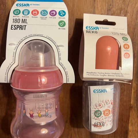 BIBS Nappflaska i rosa med napp i medicinskt silikon. 150 ml. Ny och oanvänd i kartong.