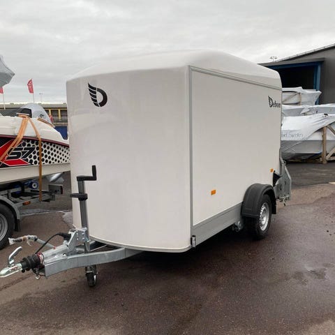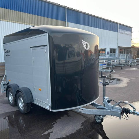 Debon C300 är ett smart utformat skåpsläp med riktigt hög kvalité. Combiramp och Pullman komfortfjädring som standard. Släpet har en välvd glasfiberfront för minsta luftmotstånd.
