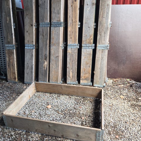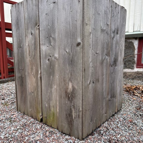 Hel låda på hjul. Ej impregnerat trä. Stabil och hel. Passar för att torka ved eller förvara annat som kan behöva förflyttas.