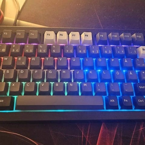 Trådlöst (följer med sladd). Knappt använd. Riktigt bra mekaniskt keyboard för en låg kostnad. Utbytbara key caps (följer med verktyg för att byta).