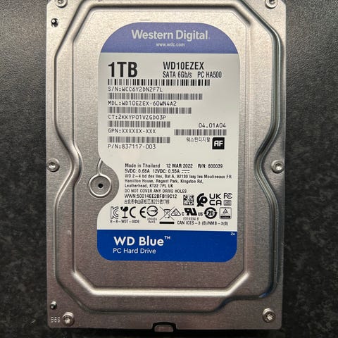 Hårddisk WD Scorpio Blue med en kapacitet på 500GB.