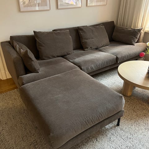 Sökord: Soffa, fin soffa, mörkgrå soffa, svart soffa, stor soffa, rak soffa, möbler, möbel, fräsch soffa, fint skick, soffa utan revor, liten soffa, tvättad soffa, Mio Harper soffa, Harper soffa, Mio harper fåtölj, svart fåtölj, soffgrupp.