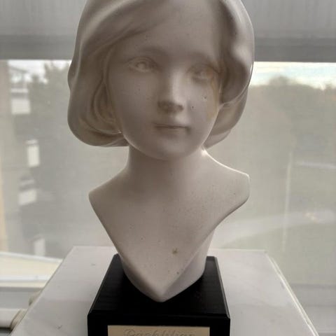 Vacker staty föreställande en flicka med korg, tillverkad i plast med fina detaljer. Den klassiska designen och den generösa höjden gör den till en unik inredningsdetalj som passar både vardagsrum, hall eller uteplats. ger en klassisk och mysig känsla i hemmet