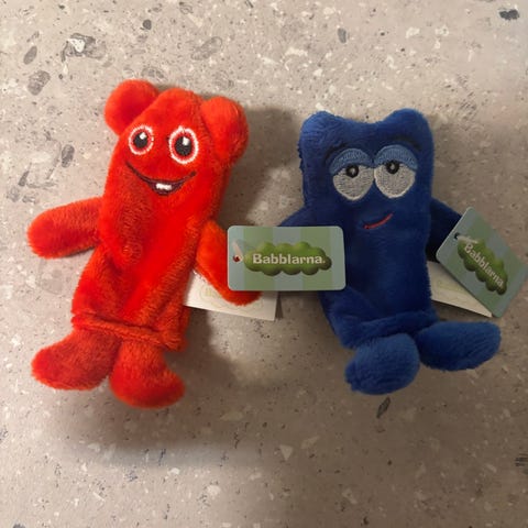 42 fingerdockor varav alla utom Hunden Rund (bokfigur) nederst är handgjorda. De 40 översta är stickade (bl.a. krokodiler, orm, nyckelpiga, alpacka, apa, lejon, delfiner, NallePuh, Spindelmannen).