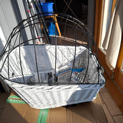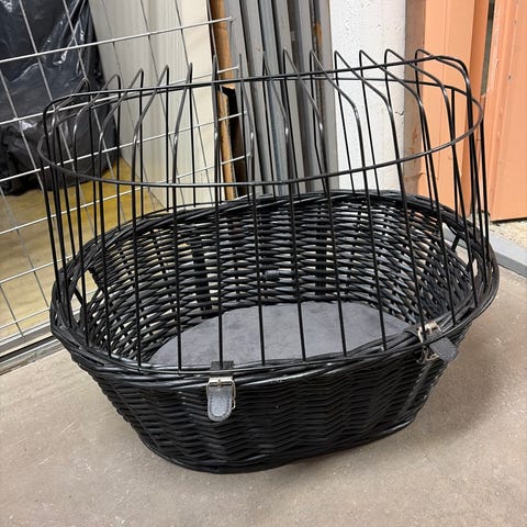 En Trixie cykelkorg till mindre hund/ katt att monter fast på pakethållaren. Den dyna som ligger i korgen, är ganska så sliten. Så jag tycker nästa hund/ katt kan få sin egna.