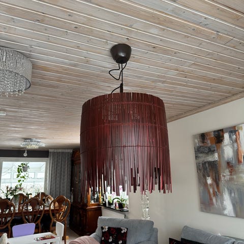 Fint skimrande taklampa. Passar över matsalsbord. Mått i diameter c:a 50 cm.